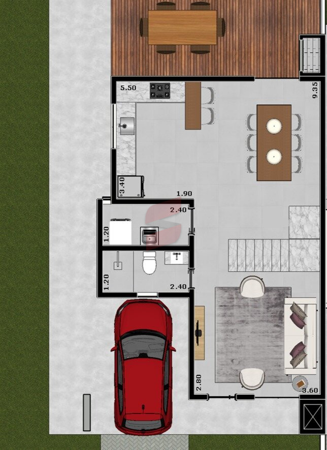 3. Salas: jantar e estar integradas;