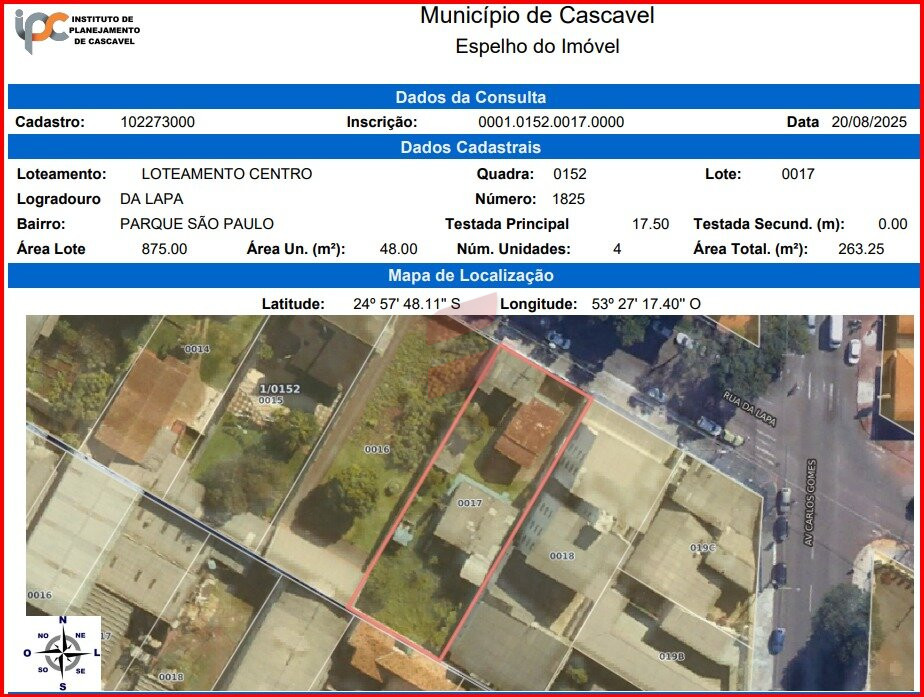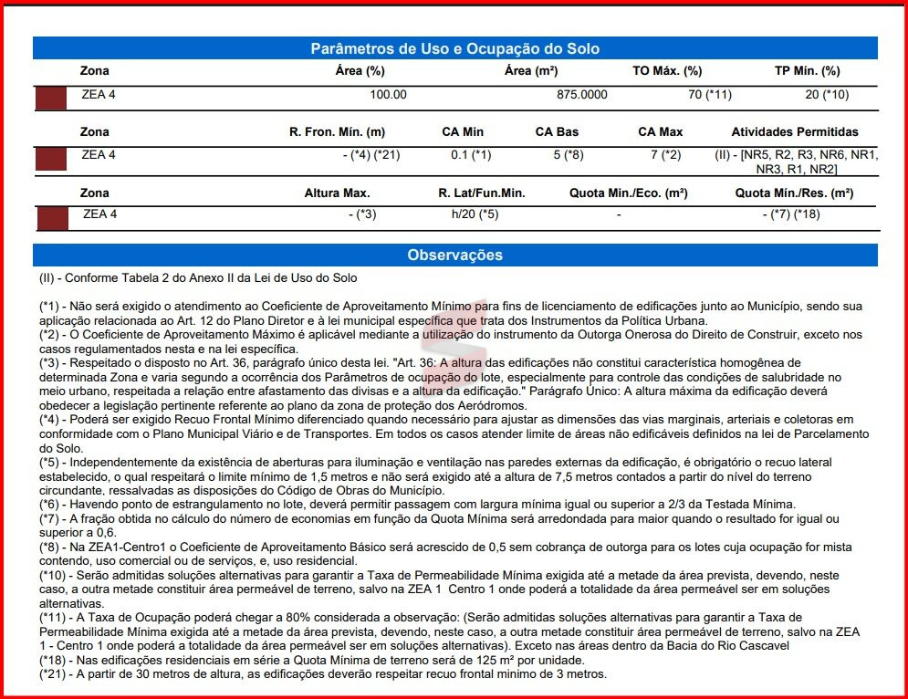 Com zoneamento ZEA 4 (zona de estruturação e adensamento 4), o lote permite construções residenciais, comerciais ou mistas, garantindo versatilidade e grande potencial de aproveitamento para investidores e incorporadoras.
