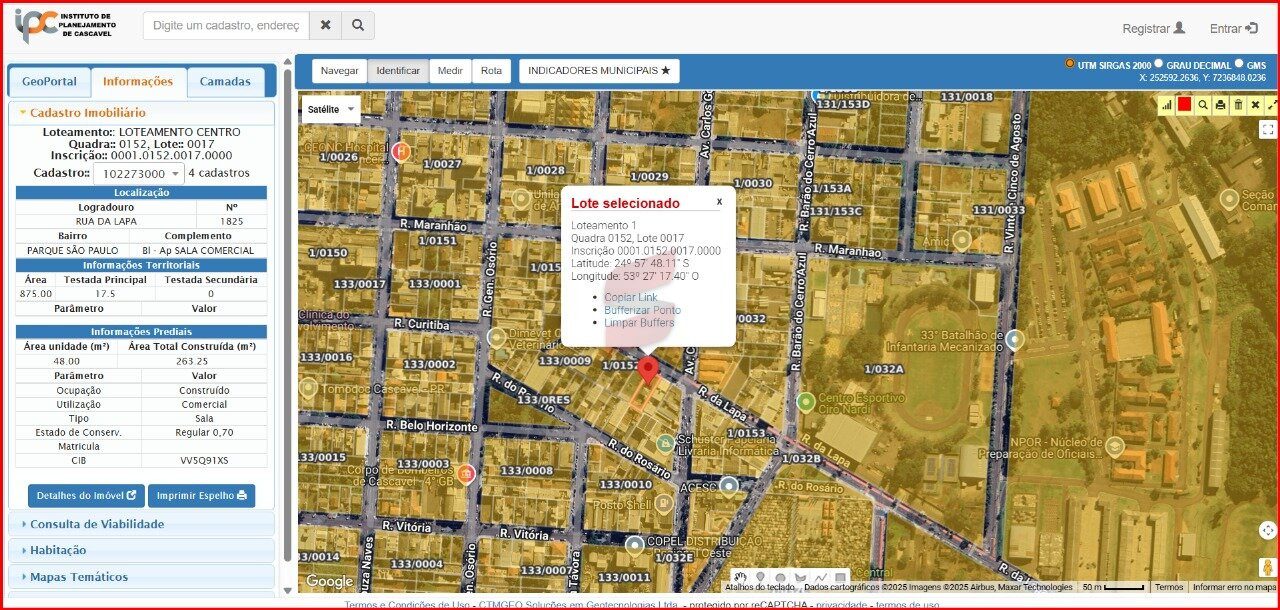Terreno amplo com 875m² medindo 17,50m x 50m, localizado na Rua da Lapa, 1825 - Bairro Ciro Nardi, próximo ao Ginásio Ciro Nardi e com fácil acesso às principais vias da cidade.
